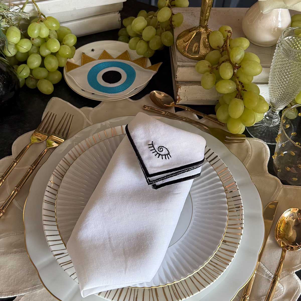 Platos para Ensalada Puebla de 19 cm en Blanco y Negro. Set de 4
