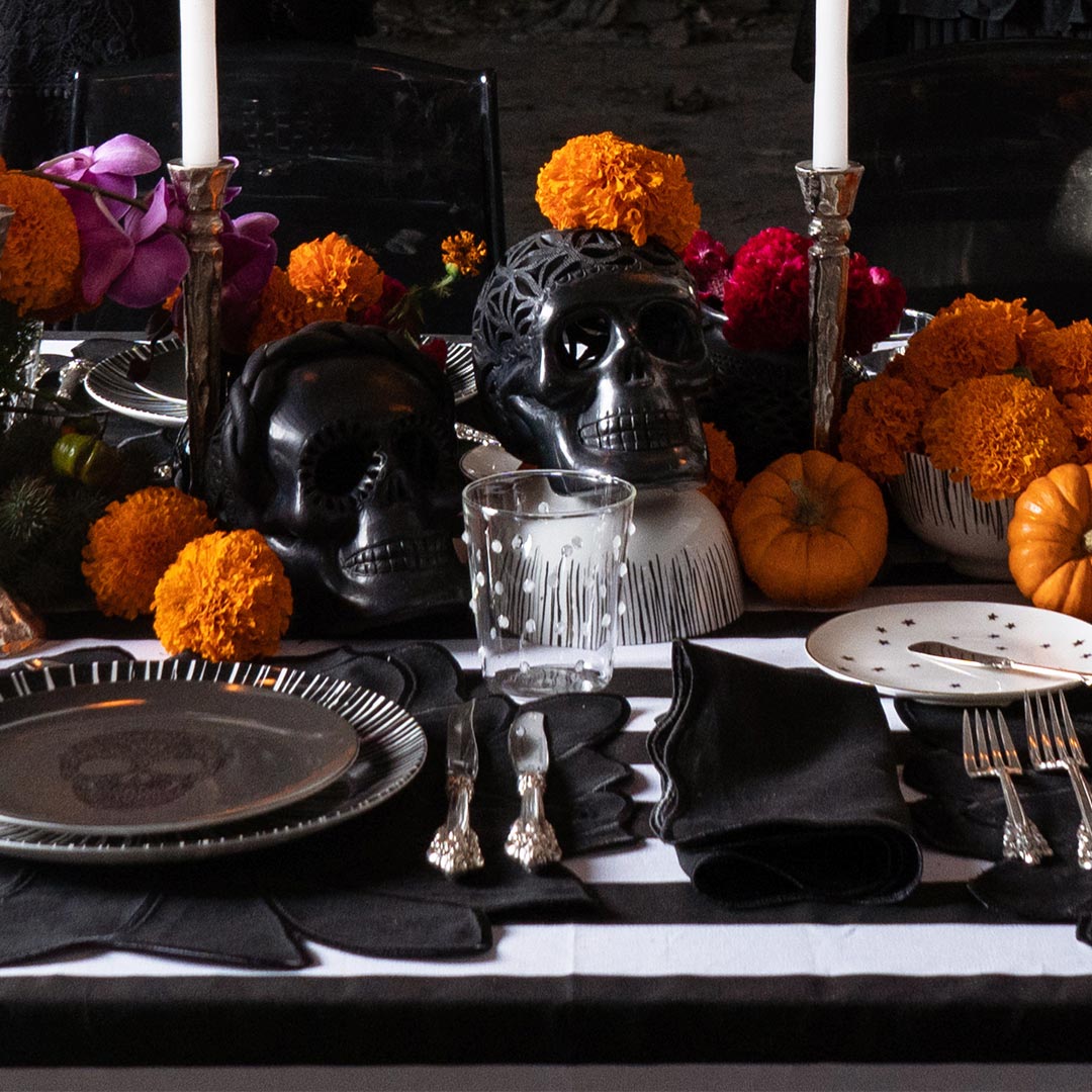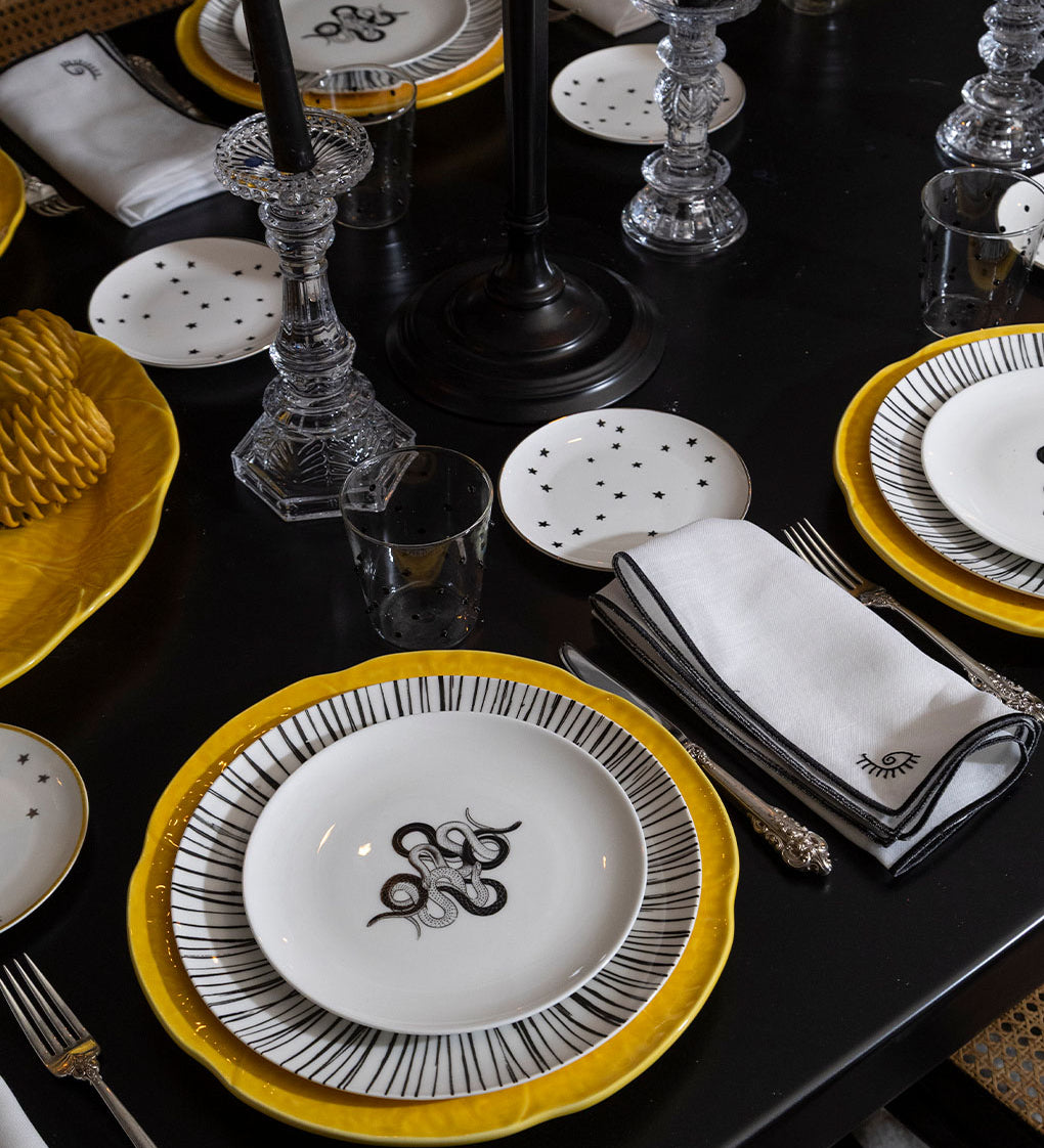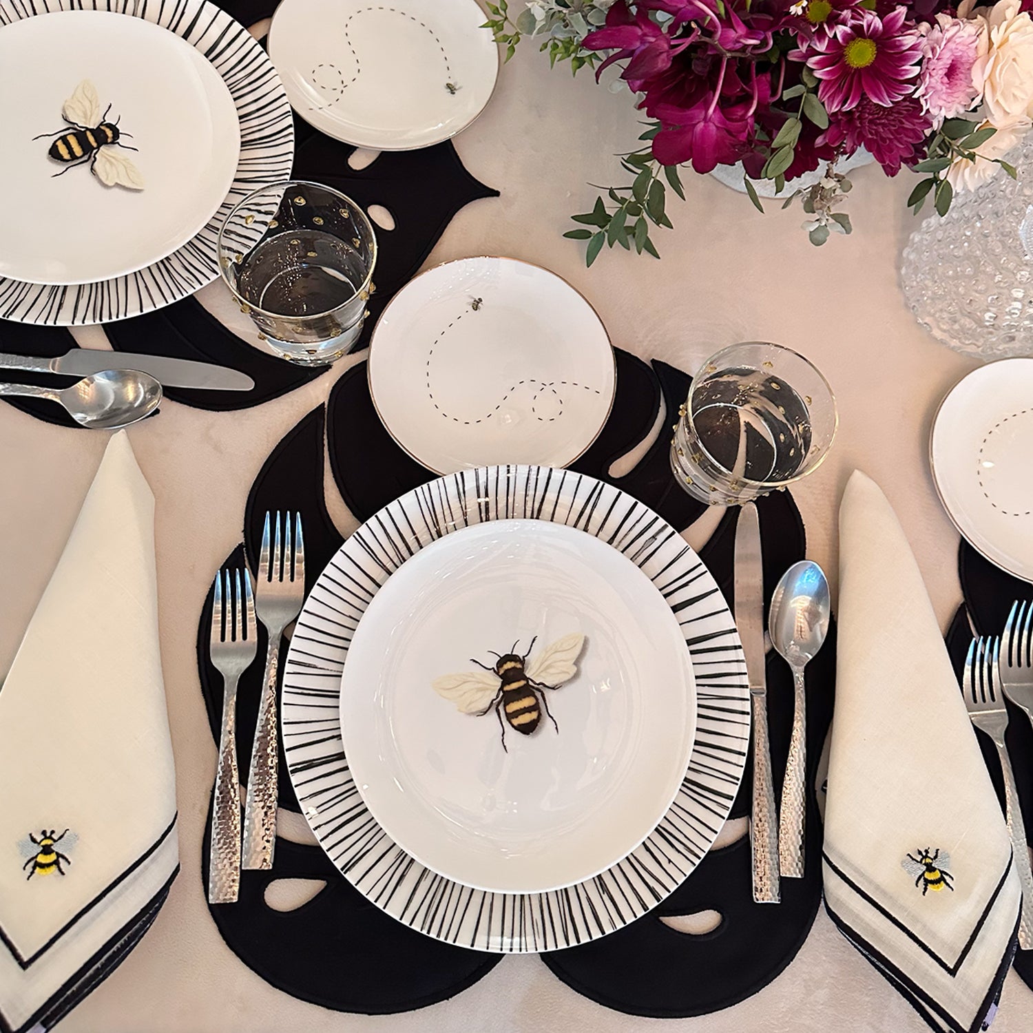 Platos Trinche Negro con Rayas Blancas, set de 4