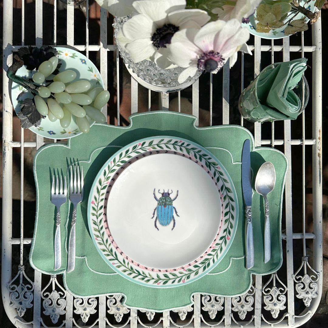 Platos para Pan Color Menta con Guirnalda de Flores, set de 4
