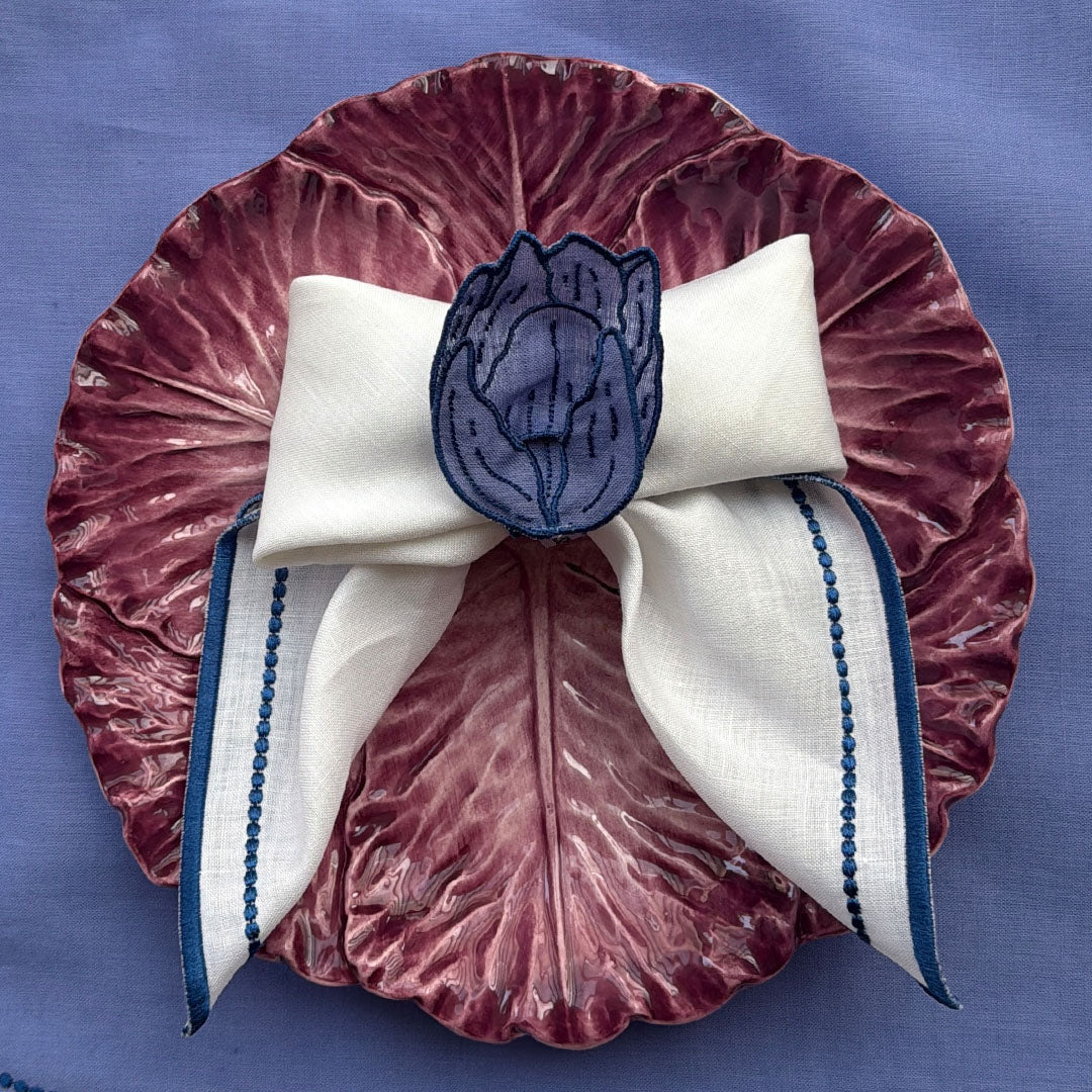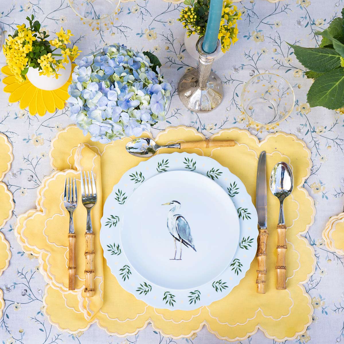 Platos Ensalada con Dalias amarillas y Listón Azul. Set de 4