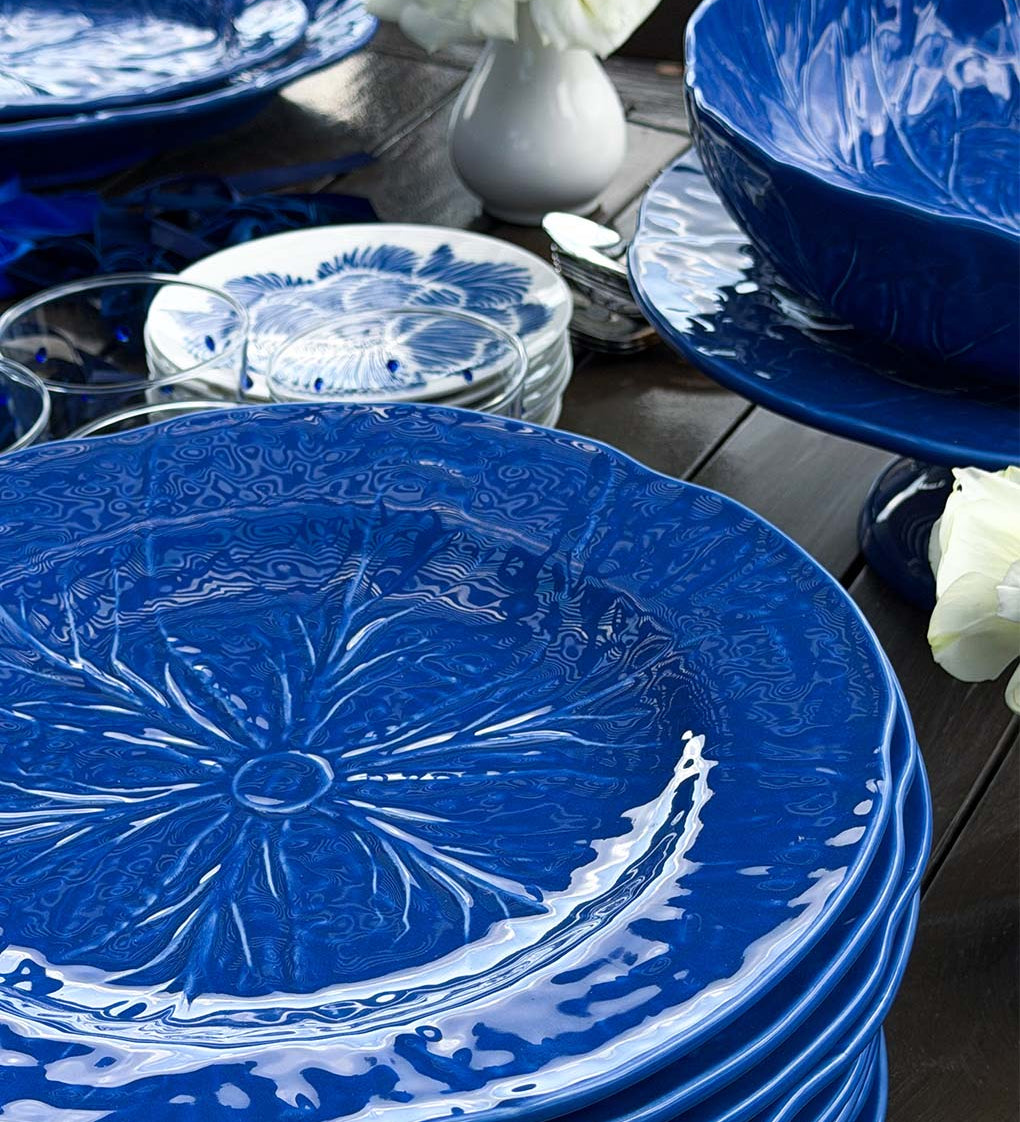 Plato Ensalada de Repollo Azul Cobalto. Set de 4