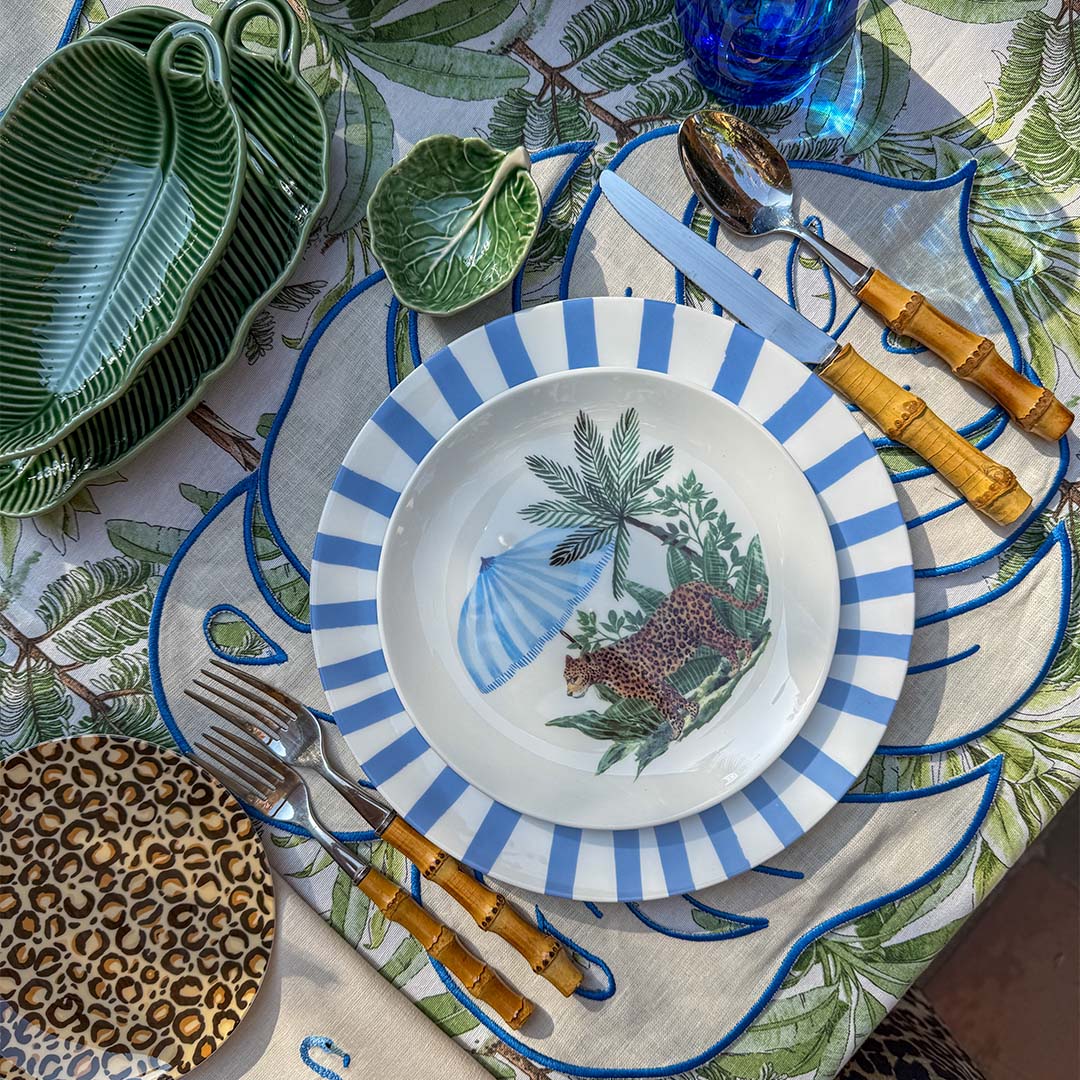 Platos Trinche Azul con Rayas Blancas, set de 4