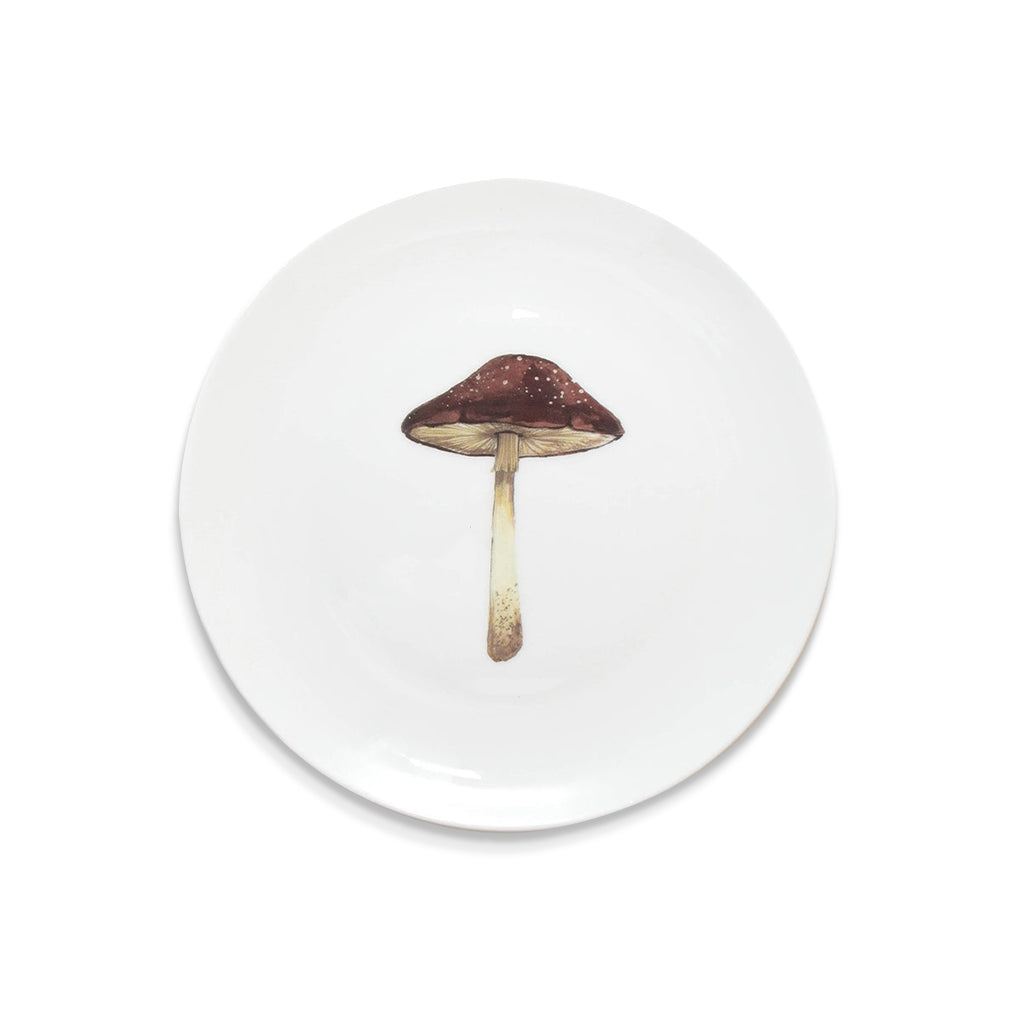 Plato para Ensalada con Hongos Morillas y Borde de Ondas en Café. Set de 4