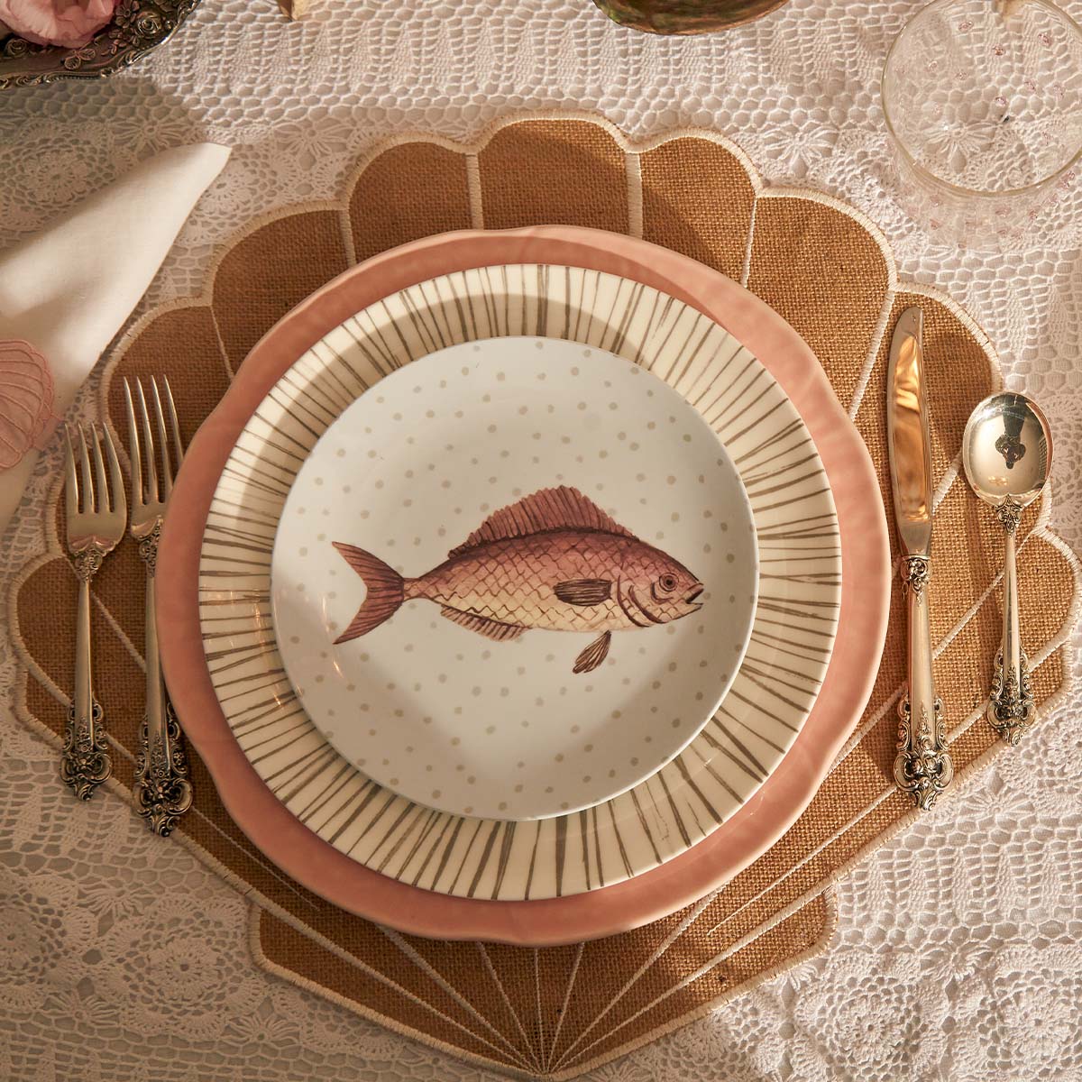 Platos para Ensalada Azul con Puntitos y Pez, set de 4