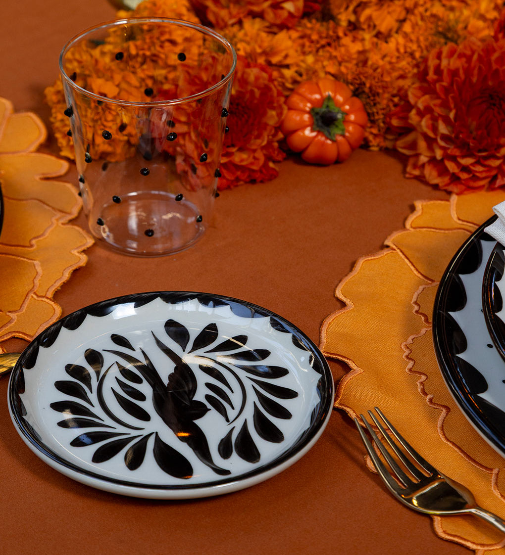 Platos para Pan Puebla de 15 cm en Blanco y Negro. Set de 4