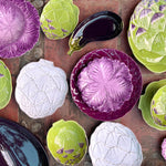 Juego de 4 hermosos platos marcadores de cerámica en forma de alcachofa en color verde de Bordallo Pinheiro. La pieza más espectacular para tu mesa.