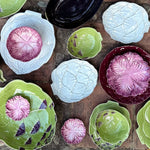 Tazón grande de cerámica en forma de alcachofa en color verde de Bordallo Pinheiro. Sirve tus platillos de manera espectacular.