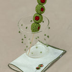 Cocteleras Olivos con Bordado de Aceitunas en Lino Arena. Set de 4
