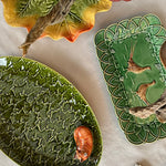 Plato para servir de cerámica en verde con dibujo de faisanes, de Bordallo Pinheiro.