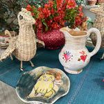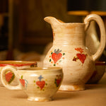 Jarra de barro elaborado de forma artesanal por una comunidad Oaxaqueña con dibujos de milagritos en las orillas. Una pieza única.