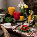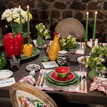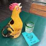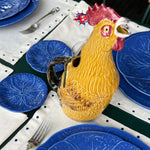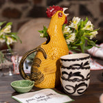 Una interesante jarra de cerámica en forma de gallo de Bordallo Pinheiro, ideal para una mesa muy mexicana.