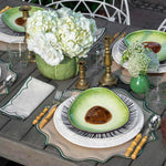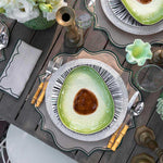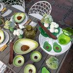 Set con 4 platos tamaño ensalada de cerámica en forma de aguacate de Bordallo Pinheiro.