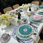 Juego de taza y platito para té en color rosa claro de Vista Alegre en colaboración con Christian Lacroix Maison, para 4 personas.
