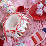 Ya sea tomando un té o un brunch acogedor, este alegre plato en forma de dulce rosa completa cualquier ambiente. Es una combinación perfecta para los otros platos de dulces.