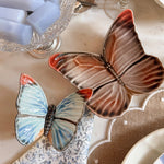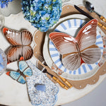 Platos de ensalada de cerámica con decoración de mariposas pintadas a mano diseñados por Claudia Schiffer para Bordallo Pinheiro. Ideal para poner una mesa de sueño y hacer Mix&Match