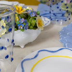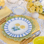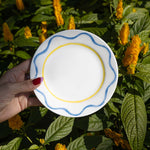 Plato para Pan con Ondas en Azul y Anillo Amarillo. Set de 4