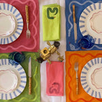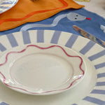Plato para Pan con Ondas en Rosa Fuerte y Anillo Rosa Claro. Set de 4