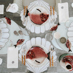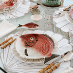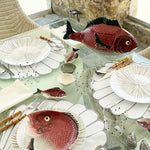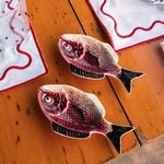 Juego de 4 platitos pequeños en forma de pez Huachinango para colocar aceite de olivo, especias, salsas o condimentos de cerámica de Bordallo Pinheiro.