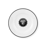 Plato sopero de porcelana color blanco con negro de Vista Alegre en colaboración con Christian Lacroix Maison. Set con 4 piezas.