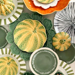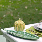 Hermosa sopera con tapa en forma de calabaza en amarillo y verde. Ideal para servir sopas individuales y sorprender a los invitados. También se puede usar para decoración en centro de mesa.