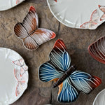 Paltón ovalado de cerámica con decoración de mariposas pintadas a mano diseñados por Claudia Schiffer para Bordallo Pinheiro. Ideal para poner una mesa de sueño y hacer Mix&Match