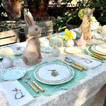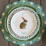 Juego de 4 platos para ensalada de porcelana de 20 cm diseñados por Maria de Vecchi en exclusiva para ZASH con un conejo y guirnalda de moño.