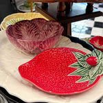 Encantador plato de servicio o rabanera en forma de fresa de la colección MORANGO de Bordallo Pinheiro.