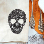 Creativo juego de 4 servilletas elaboradas en lino color crudo con una calavera bordada en negro. Ideal para celebraciones de Día de Muertos o Halloween.