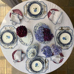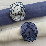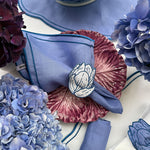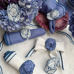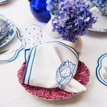 Servilletero de Tulipán en Lino Blanco con Bordado Azul. Set de 4