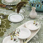 Destaca con este hermoso set de charola con 3 mini bowls de la colección Olival de Bordallo Pinheiro, perfecto para colocar aderezos, salsas o extras para tus platillos en la mesa.