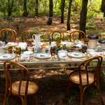 Set de Vajilla con Platos Trinche de Rayas Gris y Platos para Ensalada con Morillas y Borde de Ondas. Set para 4 personas