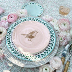 Set Vajilla Garden Bird con 4 Platos Trinches con Borde de Flores, y 4 Platos de Ensalada Pájaro Pink