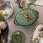 Magnifica sopera de cerámica de 3L con tapa decorada con la imagen de un venado proveniente de la colección "Bosque" de Bordallo Pinheiro.