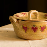 Sopera de barro elaborado de forma artesanal por una comunidad Oaxaqueña con dibujos de milagritos en las orillas. Una pieza única.
