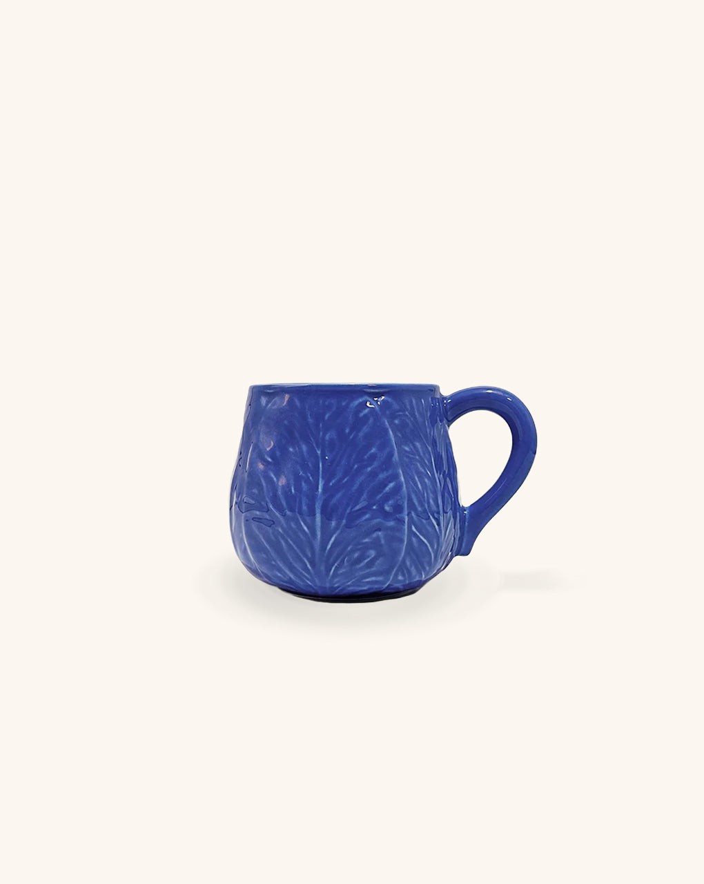 La icónica vajilla de repollo hecha en Portugal en exclusiva para Zash. Taza de té o café en cerámica azul cobalto, una pieza que será un clásico instantáneo. Ideal para combinar con otras vajillas, poner mesas hermosas y para usar toda la vida.