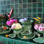 Pequeño tazón de cerámica en forma de una hermosa hoja de repollo curva en color verde de la colección Couve de Bordallo Pinheiro.