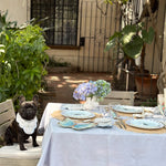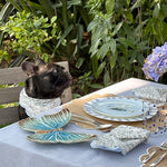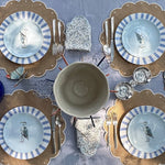 Vajilla con Platos Trinche Candy Cane Azul y Platos de Ensalada Azul con Garza. Set de 4