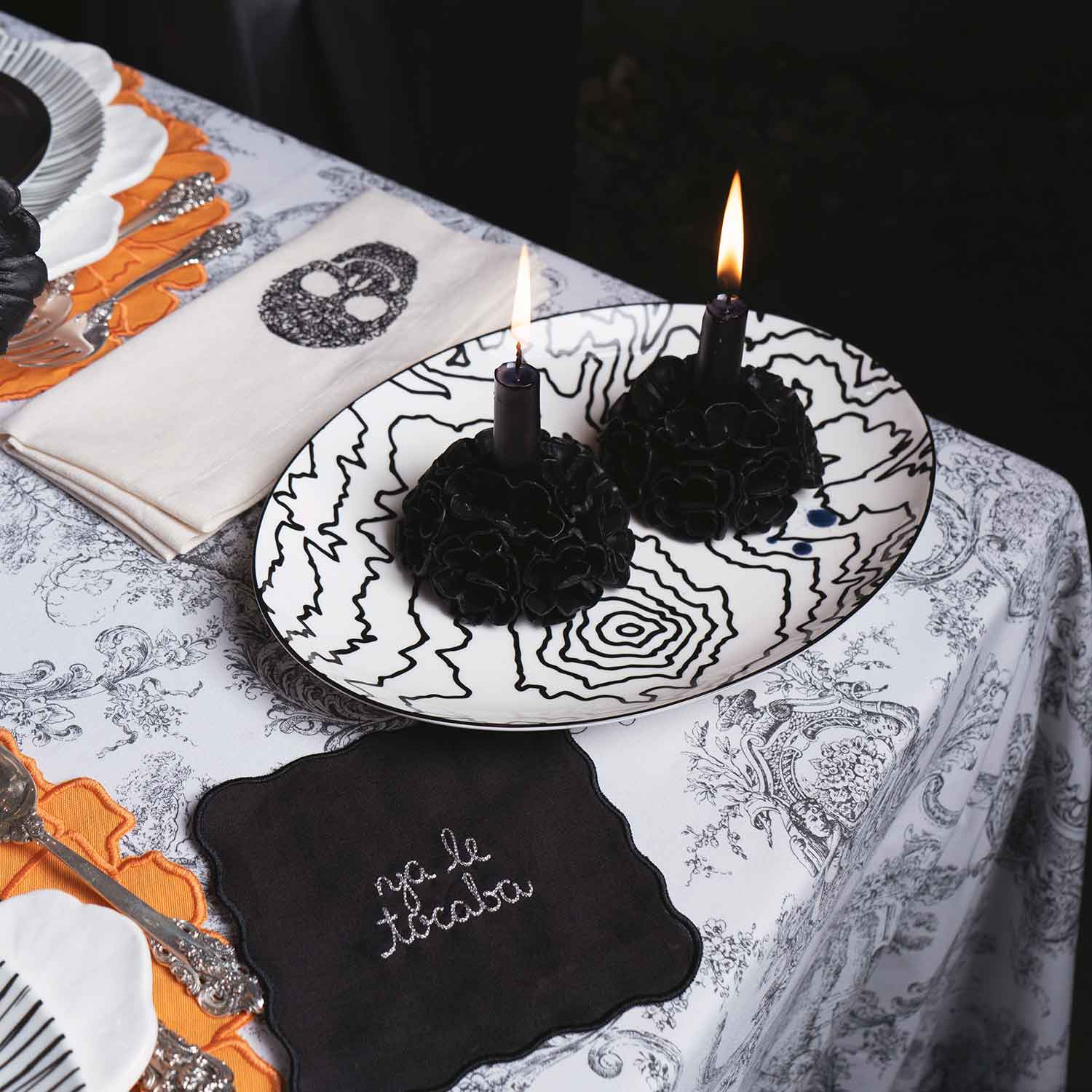 Vela Grande con Decoración de Flores de Cera en Color Negro.