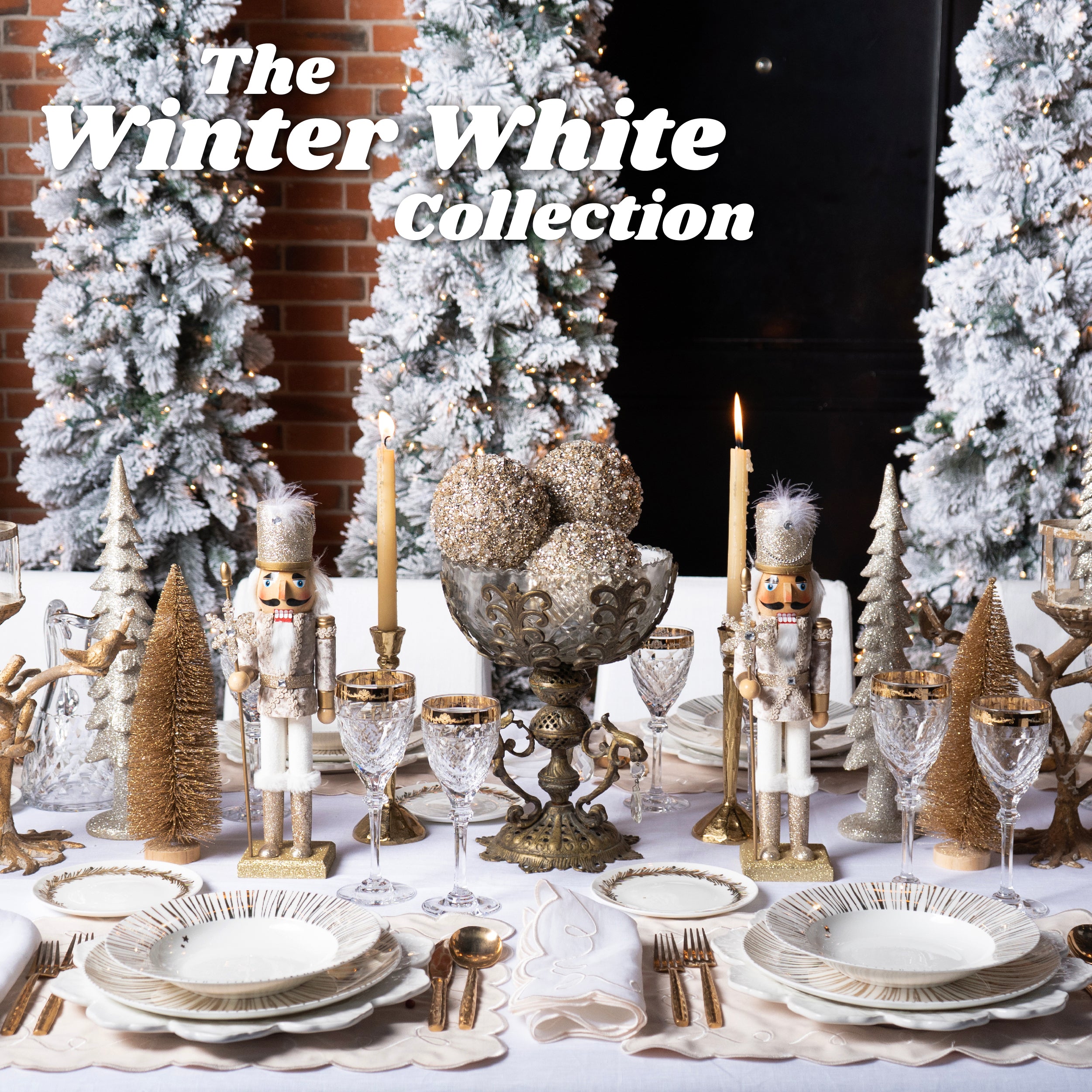Set de Mantelería Ribbon con Individuales Blossom en Terciopelo Ivory y Servilletas en Lino Blanco con Bordado de Moñito Ivory. Set para 4