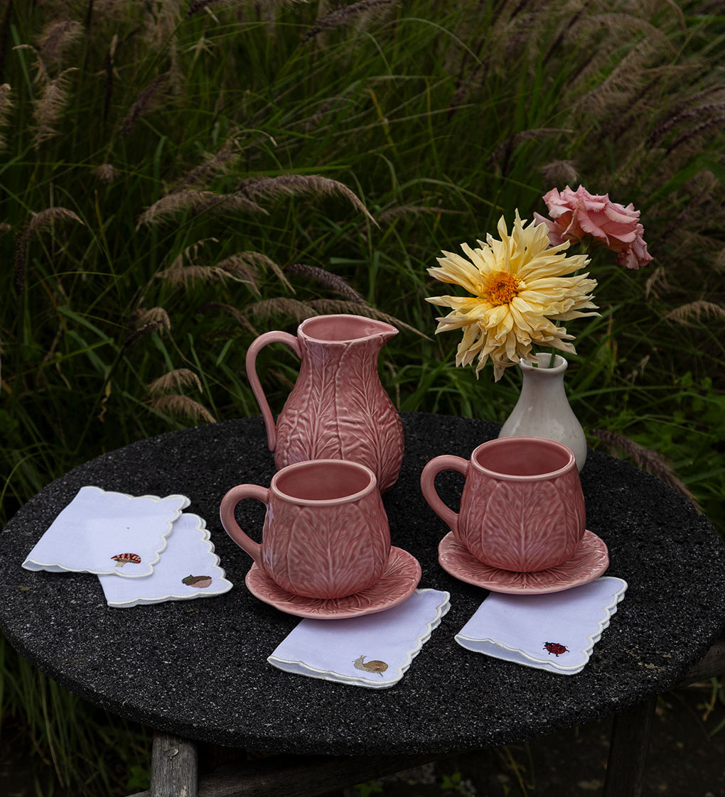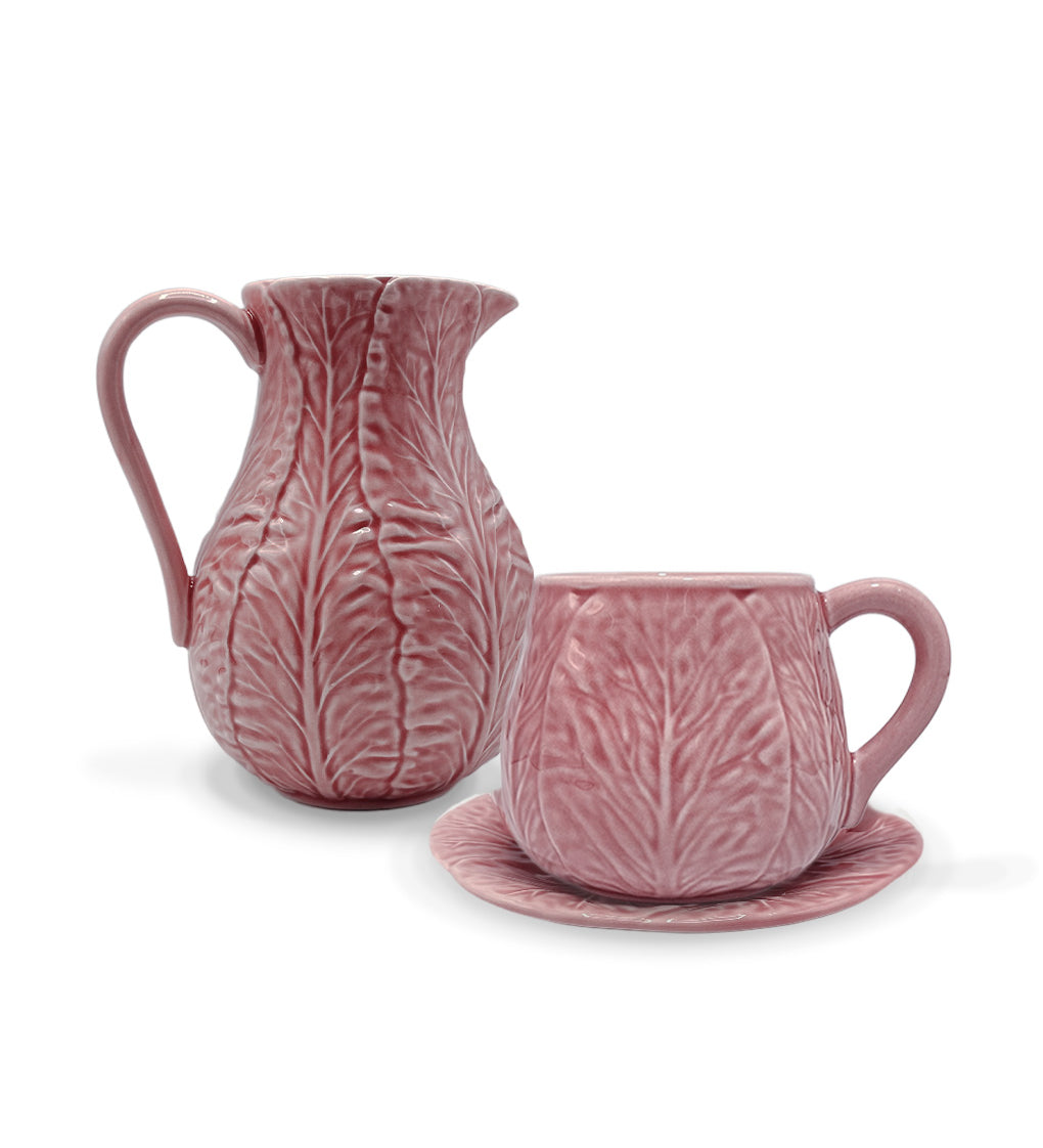 THE PINK TEA ZASHPACK: 4 Tazas de Repollo Rosa Flamingo, 4 Platos Pan de Repollo Rosa Flamingo y 1 Jarra de Repollo Rosa Flamingo.