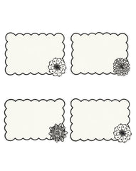 Coasters Identidad en Lino Blanco con Bordado de Biznaga, Pasiflora y Dalia Negras. Set de 4