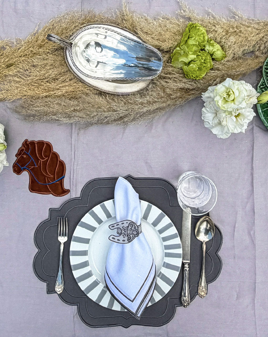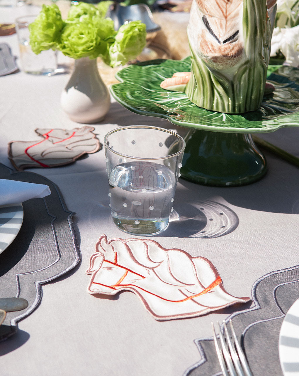 Cocteleras de Caballo en Tercipelo Bordado. Set de 4