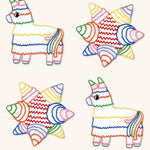 Cocteleras Posada en Lino Blanco con Bordado de Piñata y Burrito de Colores. Set de 4