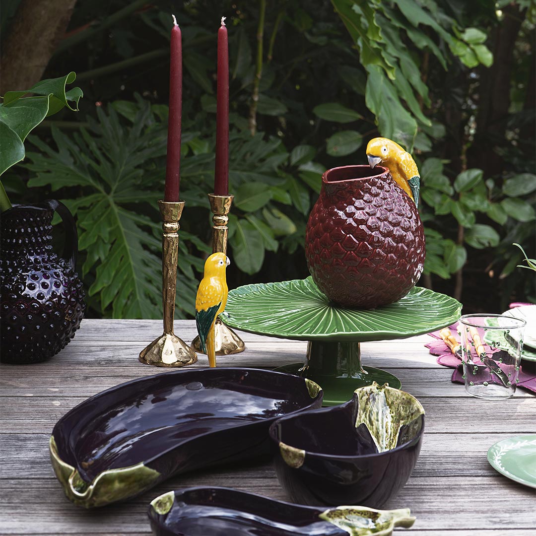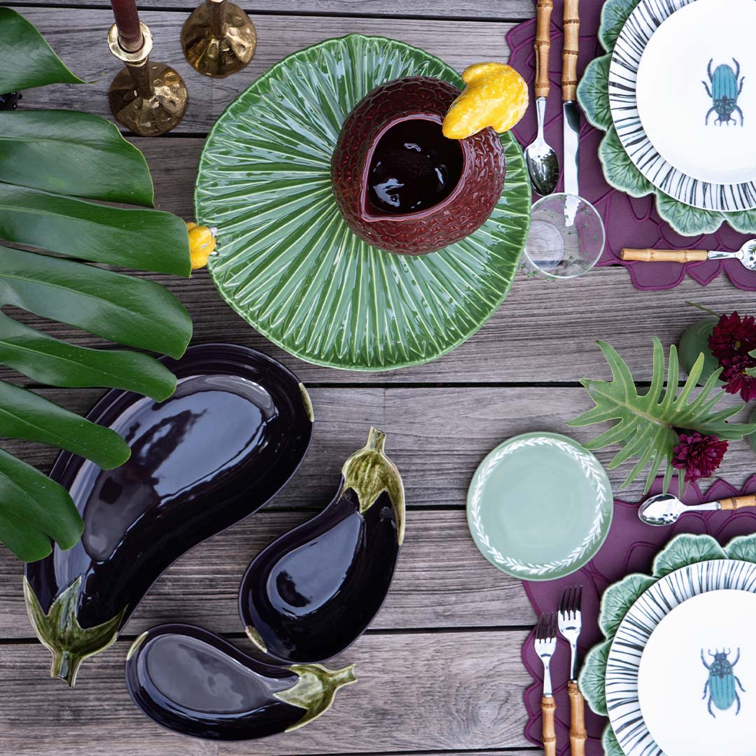 Ensaladera en forma de berenjena de la marca Bordalllo Pinheiro. Statement piece para ensaladas.