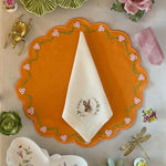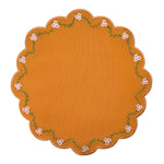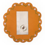 Individual Pily en Algodón Naranja con Bordado de Florecitas. Set de 4