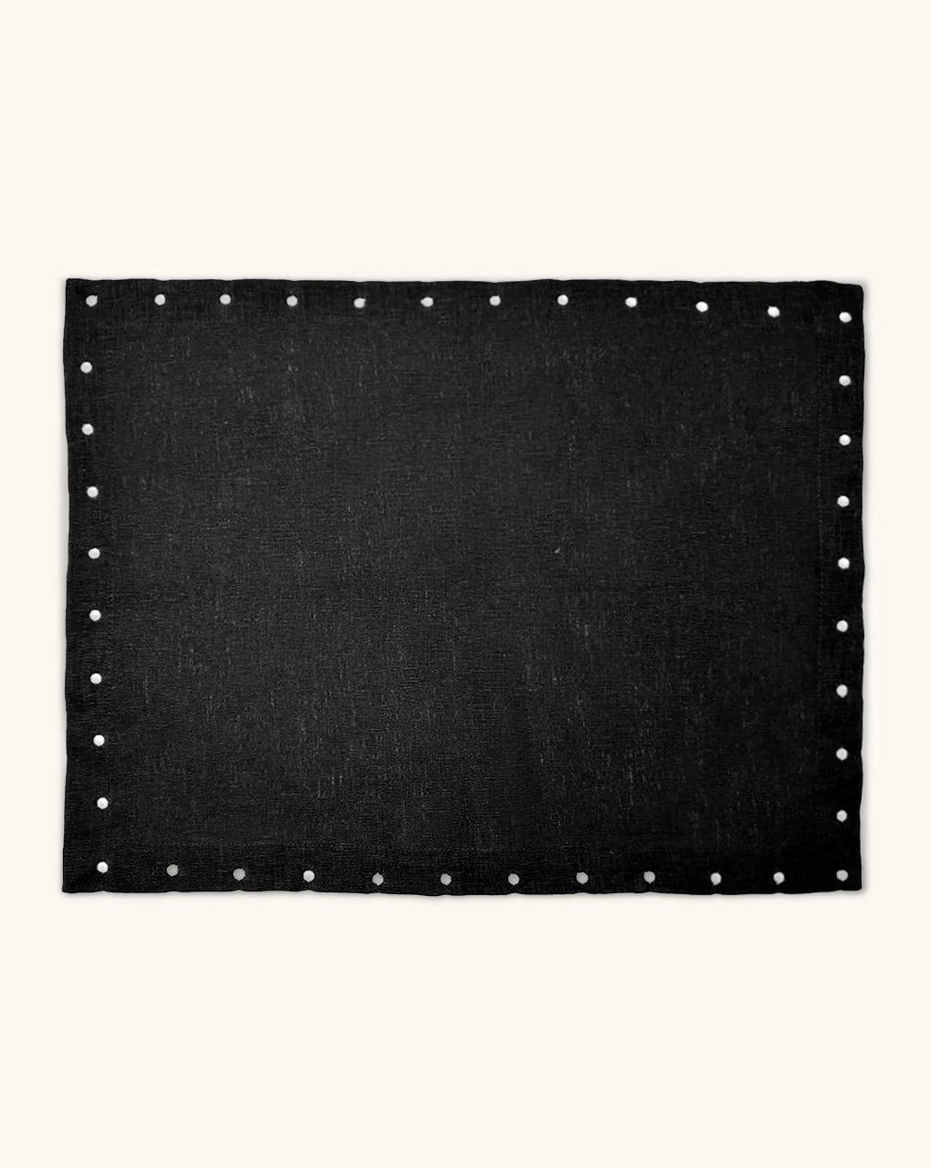 Individual Silvia en Lino Negro con Bordado de Puntitos Ivory. Set de 4