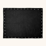 Hermoso juego de 4 manteles individuales elaborados en lino color negro con bordado de puntitos ivory, diseñados especialmente por Zash para la colaboración con Anfora.