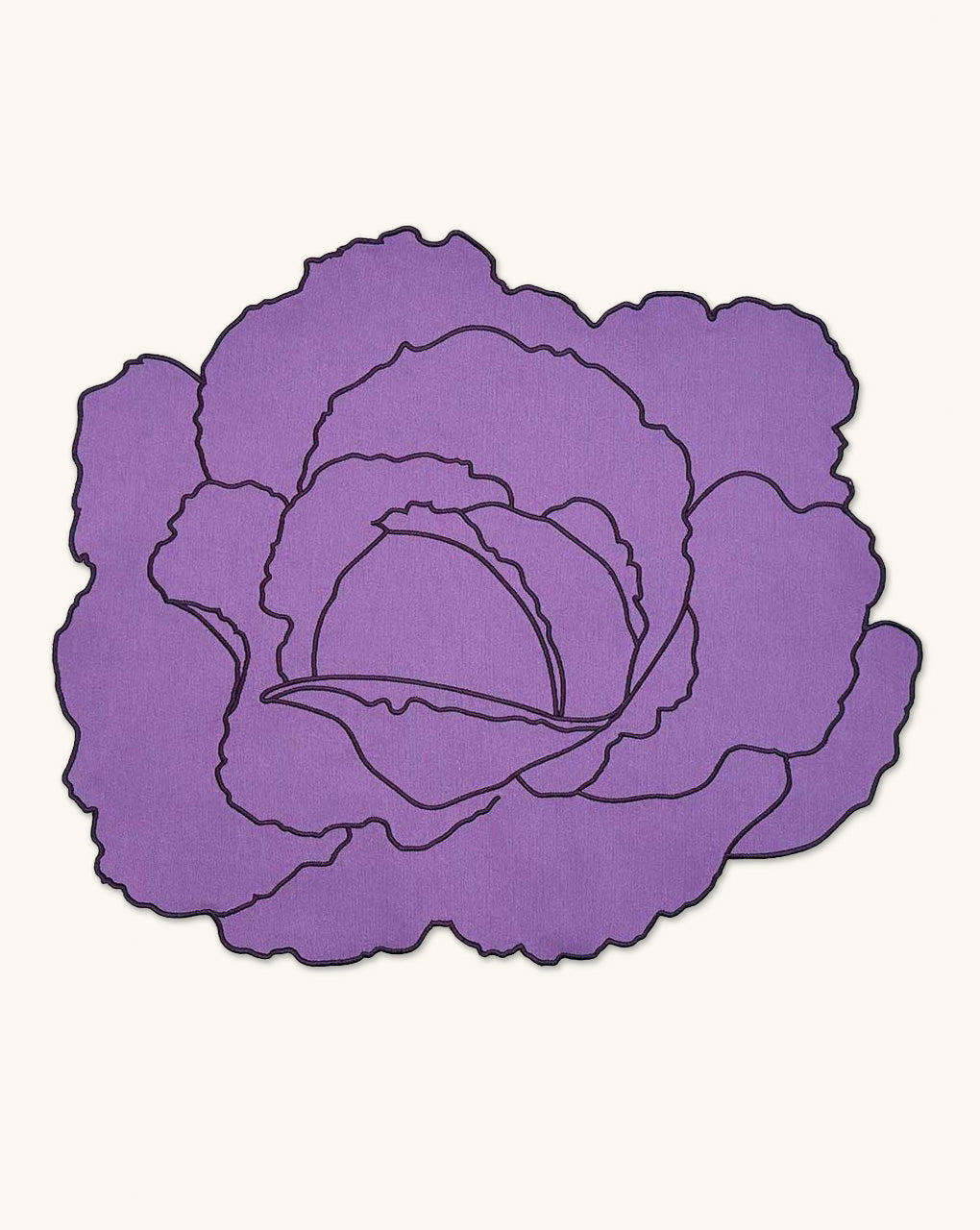 Individuales bordados en forma de repollo morado. ¿Hay algo más espectacular y mágico que esto? Agrega un toque de chicness a tu mesa con mantelitos hechos en loneta prelavada de algodón, bordado y recortado cuidadosamente a mano para lograr un mantel como salido de un cuento.