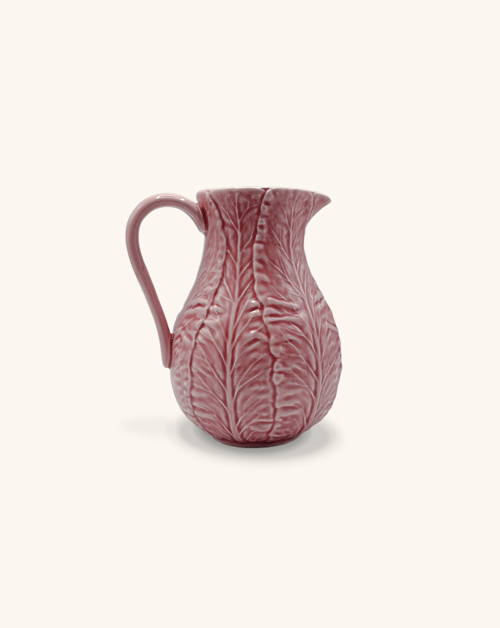 La icónica vajilla de repollo hecha en Portugal en exclusiva para Zash. Jarra de agua en cerámica rosa flamingo, una pieza que será un clásico instantáneo. Ideal para combinar con otras vajillas, poner mesas hermosas y para usar toda la vida.