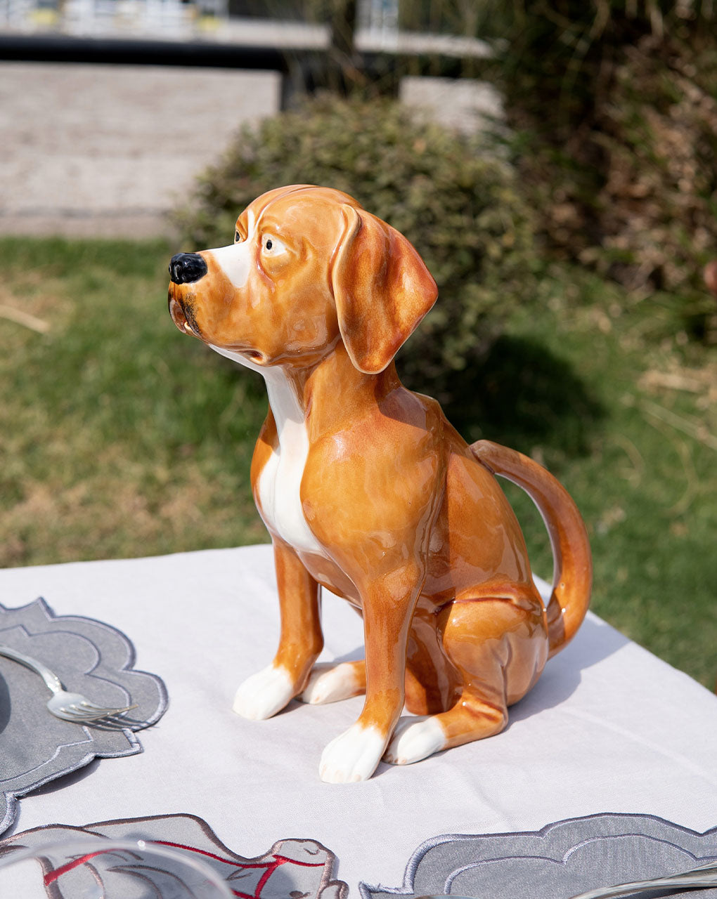 Sirve tus bebidas favoritas en esta preciosa jarra con forma de perro de caza de Bordallo Pinheiro y hazla destacar en tu mesa con tus visitas.
